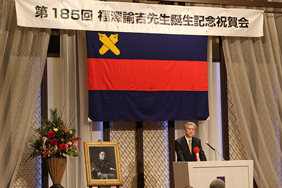 第185回福澤諭吉先生誕生記念祝賀会がホテル阪急インターナショナル4階「紫苑」に於いて開催されました。