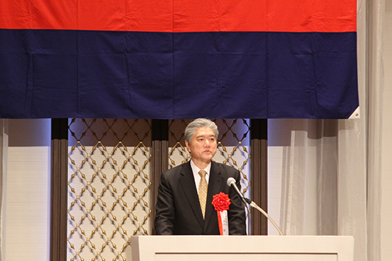 記念祝賀会では、まず渡辺岳夫大阪慶應倶楽部会長から、今年は東京オリンピックが開催される年であるが、前回のオリンピックからは社会情勢も様変わりしてきており、直面する社会課題にどう取り組んでいくかが大切であると同時に、慶應義塾大学の出身者として我々が大いに社会を牽引していく存在にならねばらないという年頭のご挨拶がございました。