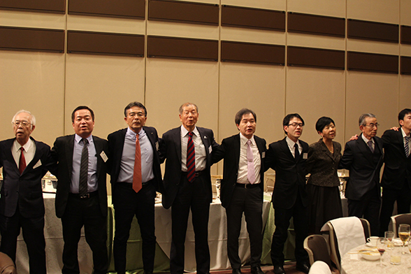 その後、懇親会に移り、駒村常任理事のご発声により乾杯を行ない、塾員間での名刺交換・情報交換、活発な歓談が続きました。